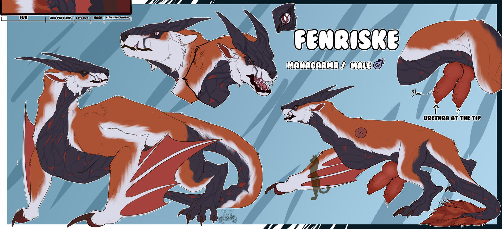 reference sheet octhree poses (anthro or feral) + palette color + three accesories + two heads (close and open mouth) + view of genitals and anus