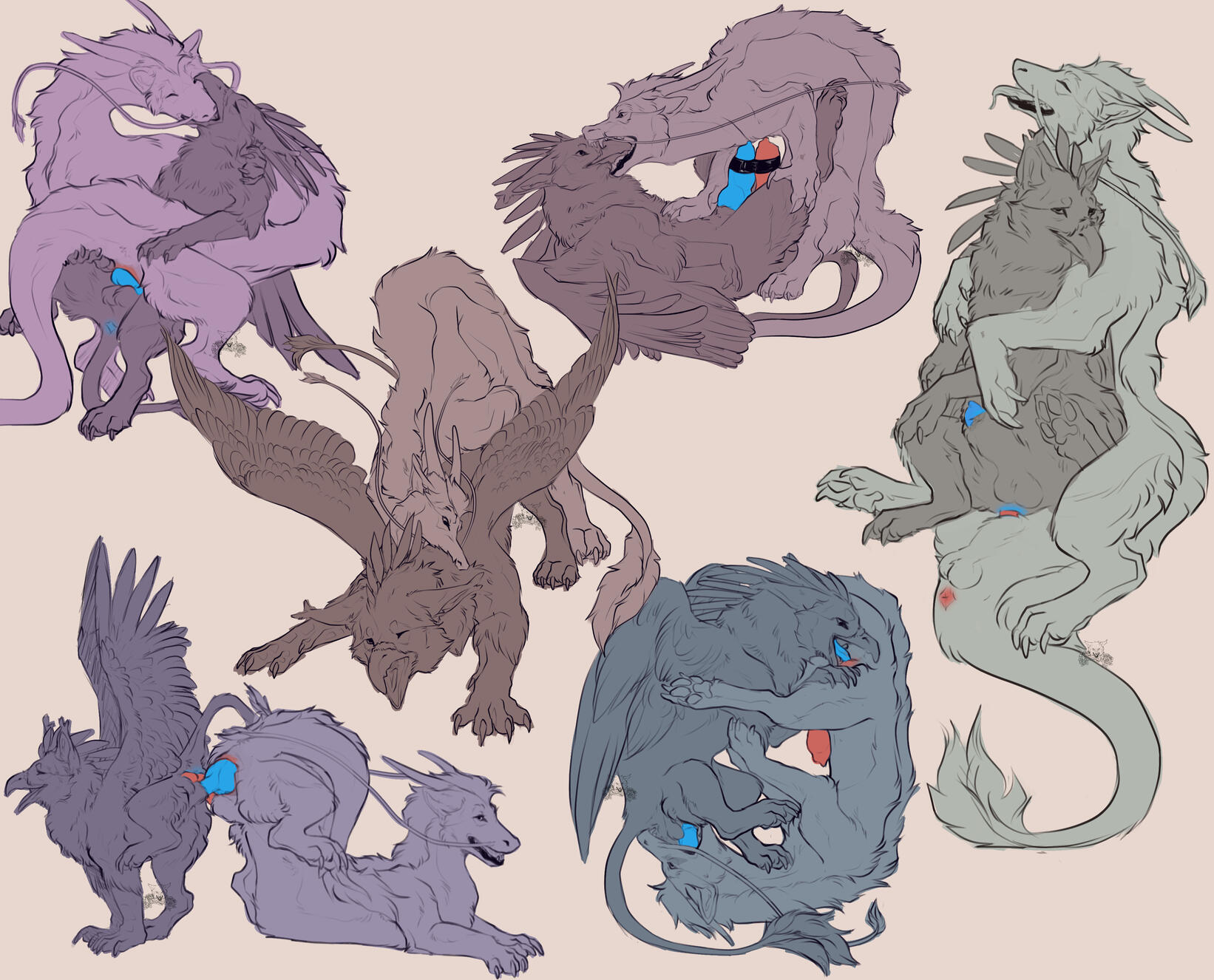 anthro / feral, one color BG, different color for each characterextra character $50,87 (price included in all poses)